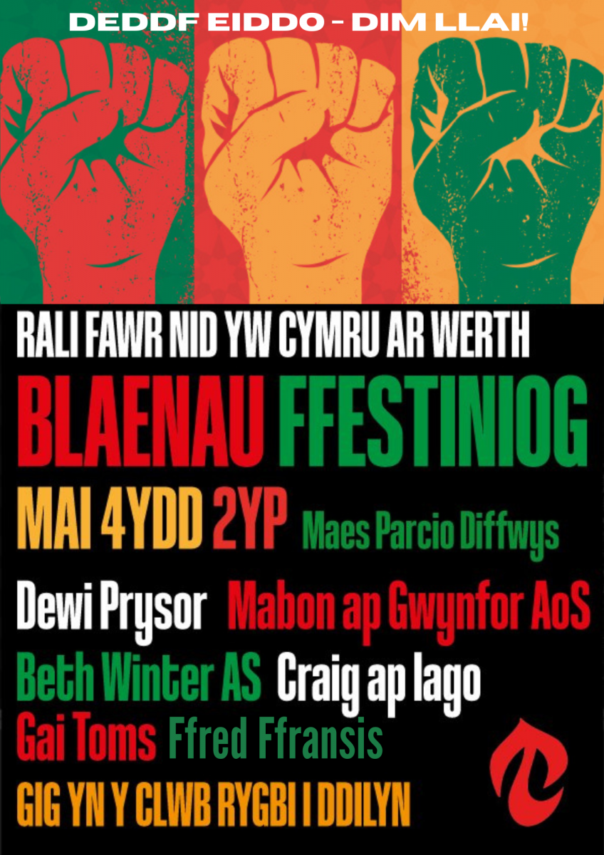 “Dewch i rali Nid yw Cymru ar Werth Blaenau Ffestiniog i sicrhau deddfwriaeth fydd yn gwneud gwahaniaeth i’n cymunedau”